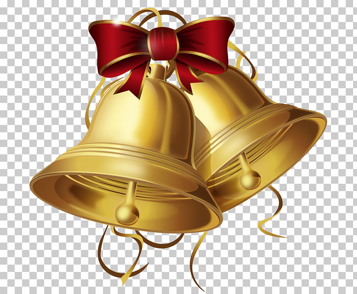 Golden Bells With Red Ribbon Bow Isolated On White Background
