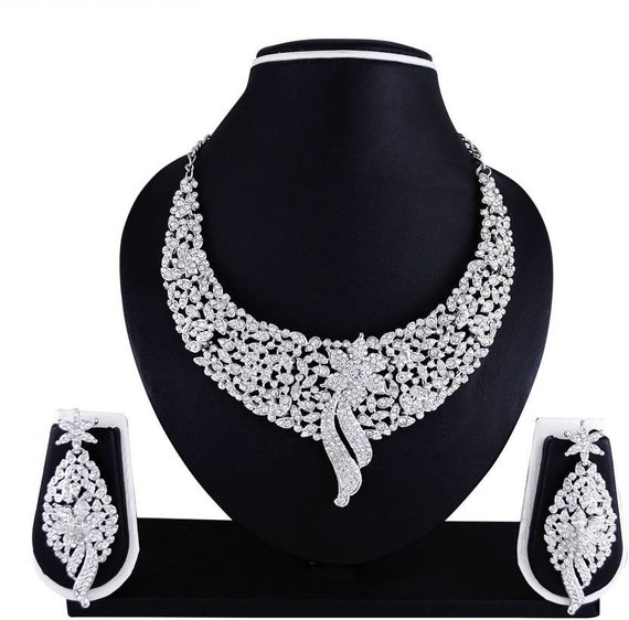Indian Bollywood Style Fashion Wedding Silver Plated Necklace Etsy