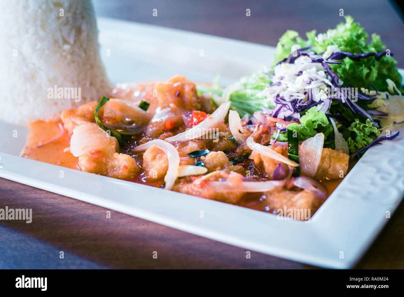 Deep Fried Fish With Sweet And Sour Served With Rice Thai Fast Food