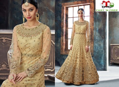 Indian Wedding Anarkali Suits Embroidery Long Gown Golden Lehenga