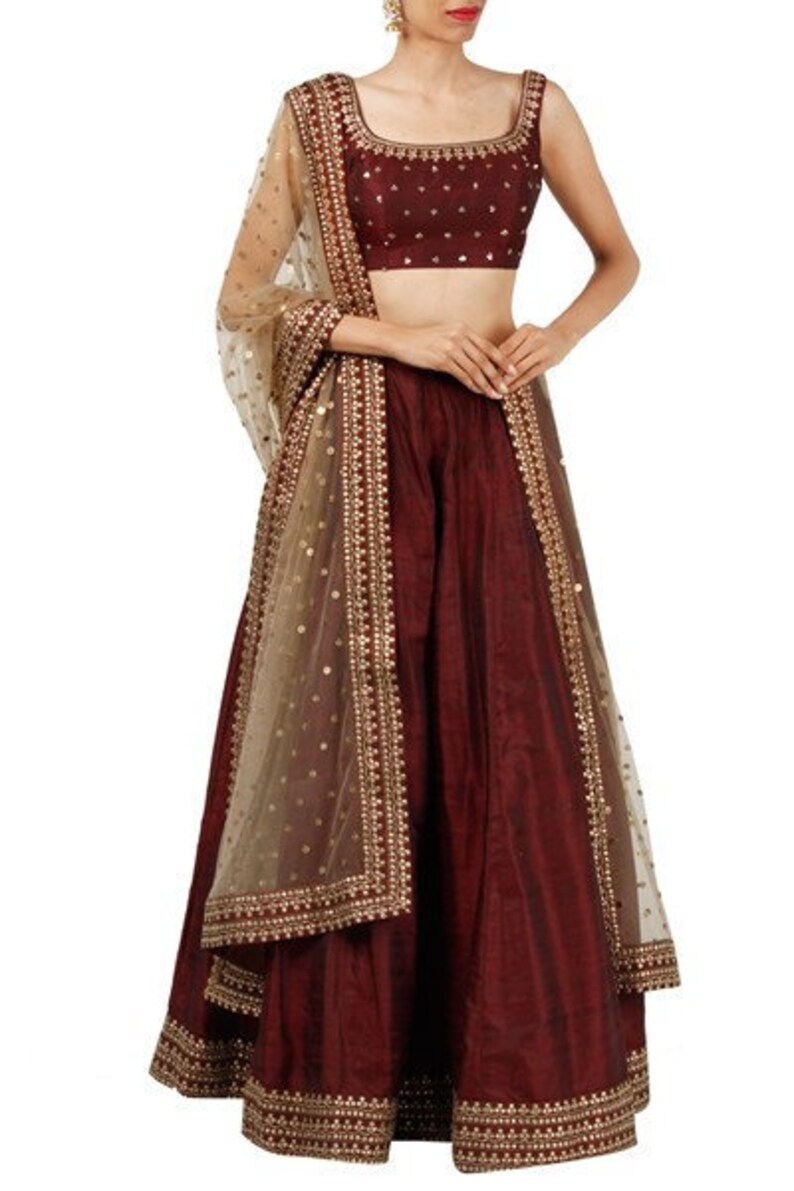 Indian Designer Bridal Wear Wine Color Embroidered Lehenga Choli